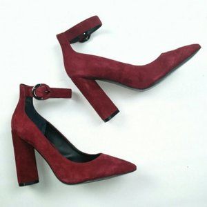Hot! Pointed-toe KENDALL + KYLIE pumps in rich suede. A lightly padded footbed adds comfort. Ankle strap with a polished buckle closure. Covered heel and synthetic sole.