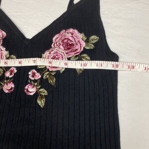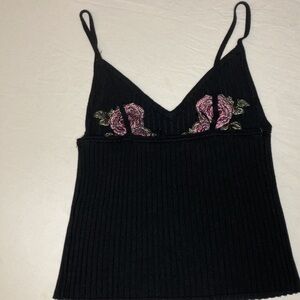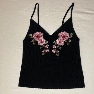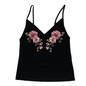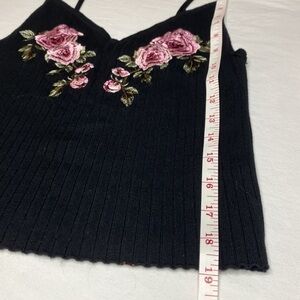 Kendall & Kylie Ribbed Cropped Tank w/ Embroidered Flowers. Size S.