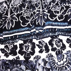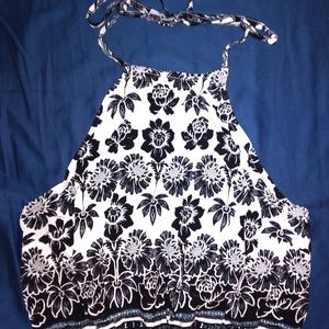 Kendal & Kylie Halter And Shorts Romper. Black and White colors with a midnight Blue color along the elastic mid waistline. Floral pattern romper with a tied halter top. Romper has pockets on sides and a 3 laced up criss cross tie on each end side. Size: X Small but fits a Small as well. I'm a small fits perfectly. Never worn! Excellent condition! Smoke/Pet free home.