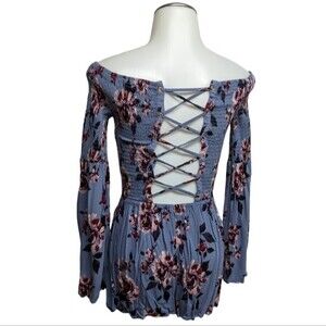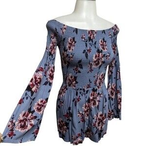 Kendall & Kylie Romper Women X-Small Long Bell Sleeves Shortall Criss Cross Back