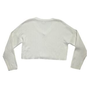 Kendall Kylie Sweater M White Ribbed Cotton Cropped Pullover V-Neck