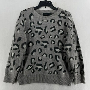 Kendall & Kylie Sweater Women's Sz Medium Gray Animal Leopard Print Crew Neck