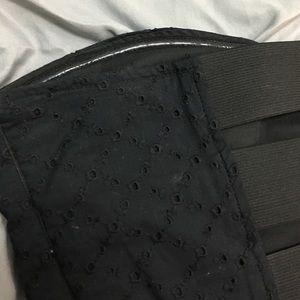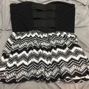 Strapless but has rubber inside to hold it up on your skin! Strappy back, and a zipper on the side. Hardly worn! Willing to bundle with other items!
