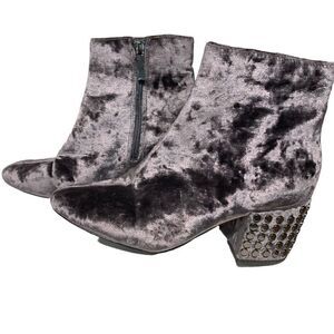 Kendall & Kylie Velvet Gray Studded Heel Ankle Boot Zip in Very Good Used Condition