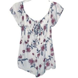 Kendall & Kylie White Floral Off Shoulder Romper Large