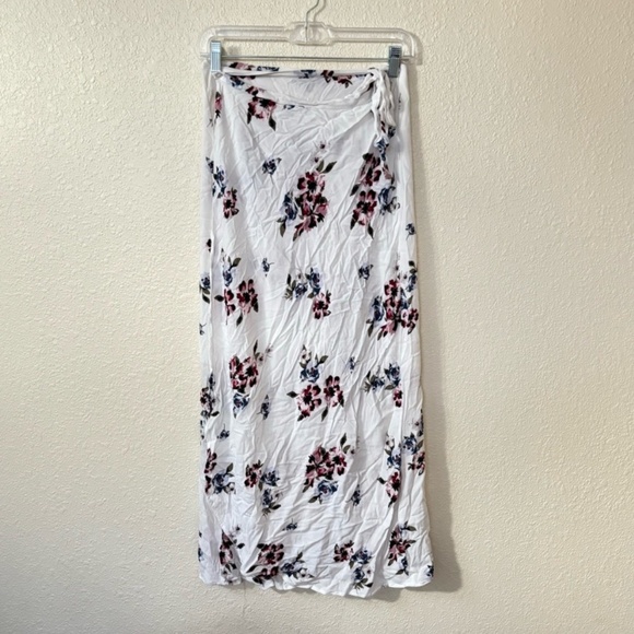 Kendall & Kylie White Floral Print Wrap Maxi Skirt Medium