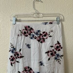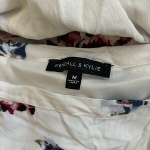Kendall & Kylie. Size medium. White and red floral print wrap maxi skirt. Lightweight material. Not lined, but not sheer. Excellent used condition with no signs of wear. Waist: 13 inches. Length: 38 inches. ALL MEASUREMENTS ARE TAKEN WITH ITEM LAYING FLAT. Shell: 100% rayon. Lining: 97% polyester, 3% spandex. ||8369||
