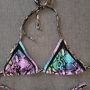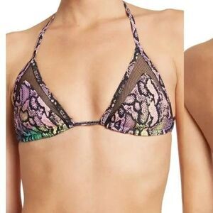Kendall & Kylie Women's Mesh Trim Tie Dye Snake Triangle Bikini Set Size…