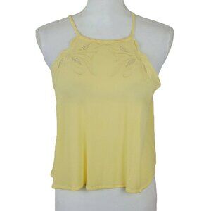 Kendall & Kylie Yellow Cropped Halter Tank Top Embroidered Small Casual Summer