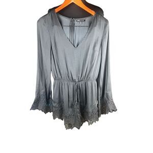 Kendall Kylie black lace romper stomper long flutter sleeve woman’s small