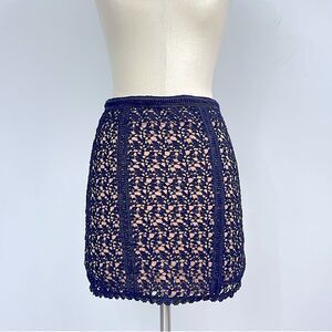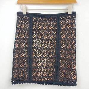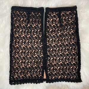 Kendall & Kylie | black lace,embroidered with nude lined mini skirt, Small, back zipper closure and split.