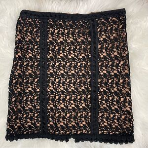 Kendall & Kylie | black lace,embroidered with nude lined mini skirt, Small, back zipper closure and split.