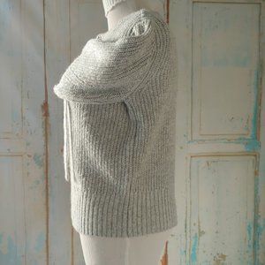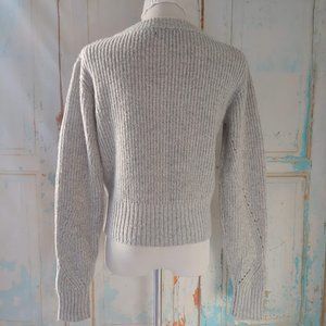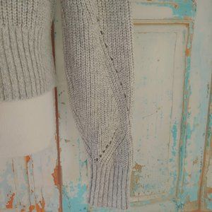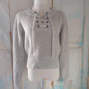 Kendall & Kylie long sleeve crew neck grommet tie detailed knit sweater/M/gray