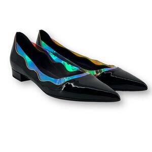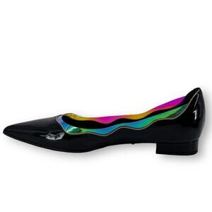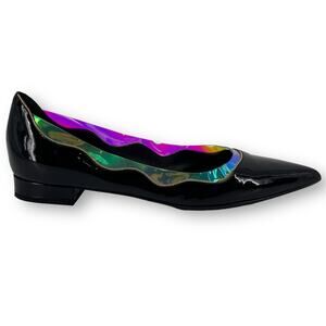 Kendall Miles Patent Leather Iridescent Trim Pointed Toe Pumps Heels Sz38.5 8.5