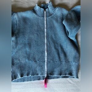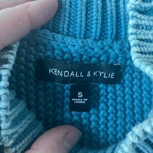 Perfect for fall, this cropped sweater By Kendall and Kylie is a distressed blue that has a rustic feel to it for the upcoming seasons. This sweater is a Size small, 100% cotton, and is easy to care for - machine wash and lay flat to dry. It is in good condition overall with no specific signs of wear to note. Elevate your fall style today with this gem!