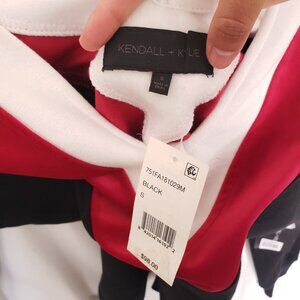 Kendall and Kylie Red White and Black V Neck Colorblock Sweater Size S