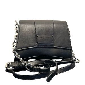 Small, cute crossbody, faux leather, silver hardware, chain accent, buckle closure, interior can fit all your needs and a cell phone