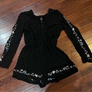 Kendall+Kylie Long Sleeve Black Romper With Colorful Stitching Size Small