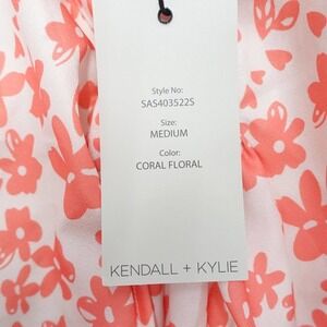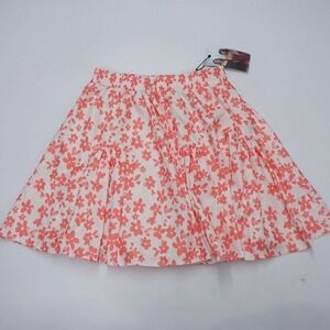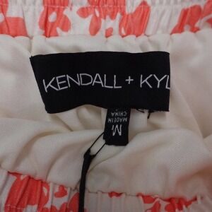 Kendall+Kylie Mini Skirt Women's Medium Coral Cream Floral Lined Drawstring