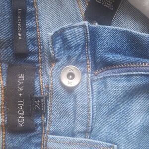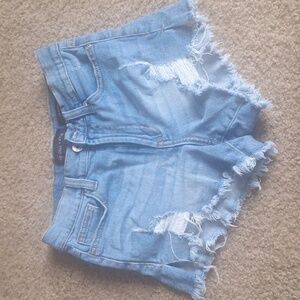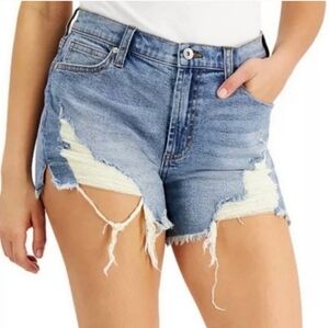 Stylish and comfortable denim distressed shorts perfect for casual outings. Features a classic blue color that pairs well with any top. Waist 25", Rise 10".