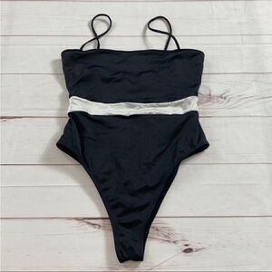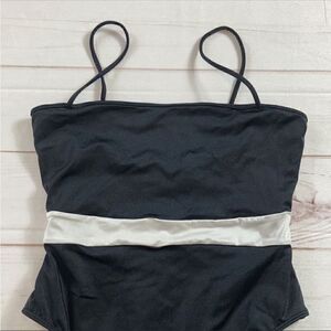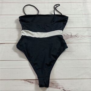 Kendall & Kylie High Cut Banded One Pice Swimsuit. Black with white stripe around the middle. Hidden light support shelf bra. No cup liner/padding. EUC. Size S