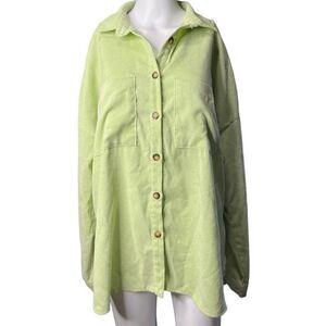 Kendall and Kylie Corduroy Button Down Shacket Green Size Medium