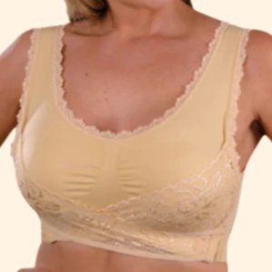 Kendally Comfy Corset Bra Front Cross Side Buckle Soft Lace Beige Size XL