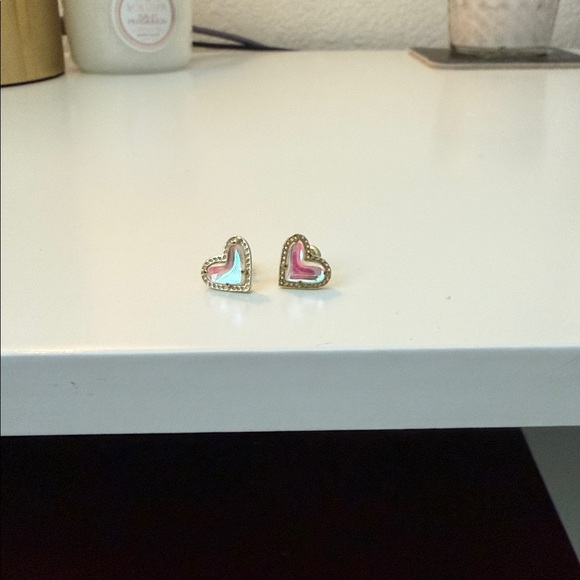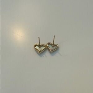 Heart shaped earrings, no tarnish on earrings, some on the backs. Never used just took out of packaging
