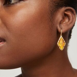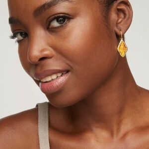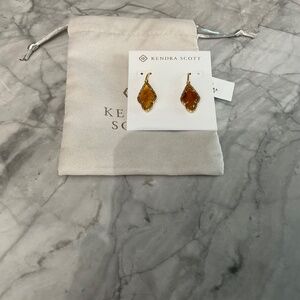 Kendra Scott Adeline Vintage Gold Drop Earrings in Marbled Amber Illusion