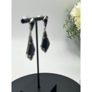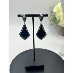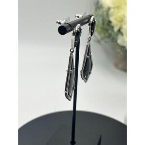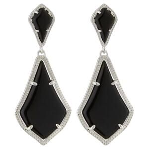 Kendra Scott Alexa Opaque Black Silver Plated Double Drop Pierced Earrings