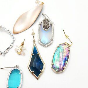 Set includes 7 Kendra Scott single earrings, 1 Alexis Bittar single earrings, and 1 Nina Ricci clip on single earrings.