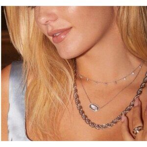 Kendra Scott Amelia Silvertone necklace in silvertone with dainty tiny dangle beads. NEW Adjustable Brand new in package, with gift box. 19 inches long. Made of rhodium over brass. From a smoke free home. Thanks for shopping with me. Please see the other jewelry items in my shop. I'm happy to bundle to save you shipping costs.