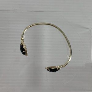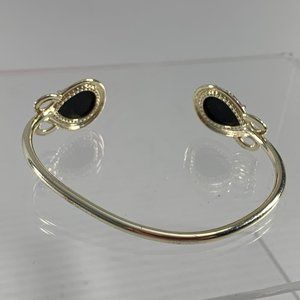 Kendra Scott Andy Bracelet Open Pinch Cuff Silver Tone Faceted Black Stones