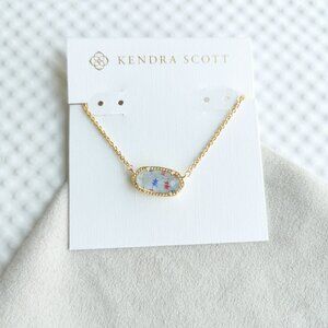 Kendra Scott Aqua Kyocera Opal Elisa Gold Pendant Necklace NEW WITH POUCH