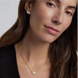 Brand new with tags attached this newly released Kendra Scott Ari Heart Emilie Pendant in Ivory Mother-of-Pearl/Iridescent Drusy is your next must have purchase. Two of the brands sweetest silhouettes in a classic toi et moi style—what's not to love? Perfect for stacking and pretty enough to wear alone, the Ari Heart and Emilie Pendant Necklace is a must-have for any jewelry lover, complete with an adjustable slider bead to ensure the perfect fit. Grey dust bag & yellow gift box included upon request (jewelry pouch doubles as a safe haven for your jewelry’s storage and a polishing cloth to keep it looking bright and shiny).