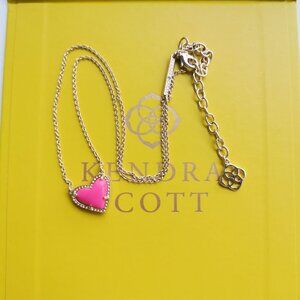 Kendra Scott Ari Heart Gold Neon Pink Necklace New