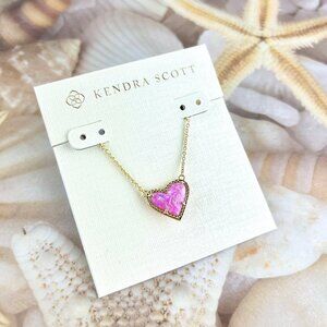 Kendra Scott Ari Heart Pink Bubblegum Kyocera Opal gold necklace.