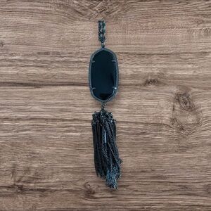 Chic black pendant with tassel detail. Perfect for any outfit.