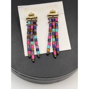 Kendra Scott Bree Gold Teal Purple Orchid Stone Bead statement Earrings