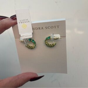 Kendra Scott Cailin Gold Huggie Earrings in Green Crystal