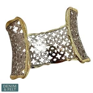 Kendra Scott Candice Statement Cuff Bracelet – Gold & Silver Filigree Adjustable