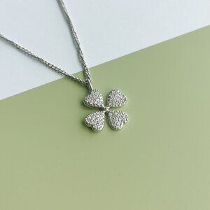 Kendra Scott Clover White Crystal Short Pendant Necklace in Silver