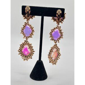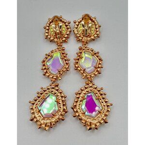Kendra Scott Crystal Iridescent Gold Triple Drop Clip On Earrings