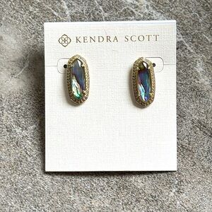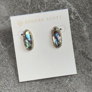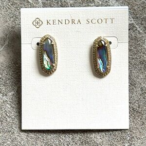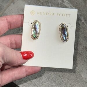Gorgeous Kendra Scott Aston Stud Earrings Crystal Pave Halo surrounds Abalone stones in a Gold setting