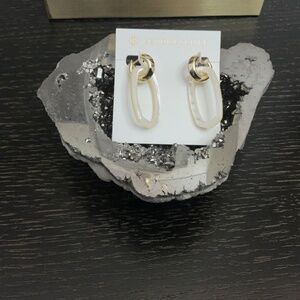 Brand new with tags attached these fabulous 2 in 1 earrings, the Kendra Scott Danielle Gold Convertible Link Earrings in Ivory Mother-of-Pearl need to be in every jewelry lovers collection. 3RD PIC IS OF THE ACTUAL PAIR BEING SOLD. The brands most iconic silhouette, reinvented. Made even more versatile, the Danielle Gold Link Earrings feature a removable stone link for maximum styling options. Wear as a huggie, a statement, or even a trend-forward asymmetrical look. Grey dust bag included upon request (jewelry pouch doubles as a safe haven for your jewelry’s storage and a polishing cloth to keep it looking bright and shiny).
