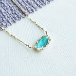Authentic Kendra Scott Elisa Aqua Kyocera Opal Gold Pendant Necklace