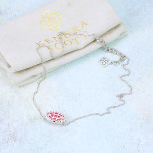 Kendra Scott Elisa Bright Pink Kyocera Opal Necklace Silver Tone