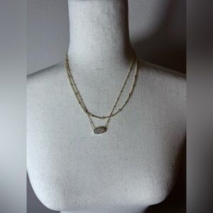 Chic layered necklace by Kendra Scott. Features gold chains with silver accents. Perfect for elevating any look.