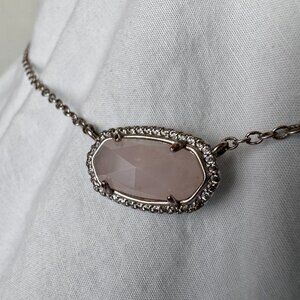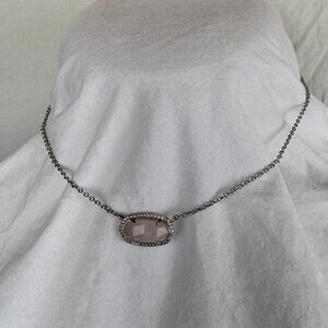 Kendra Scott Elisa Necklace in silver with light pearlescent pink stone, "Rose Quartz". Like new. KS official box NOT included.