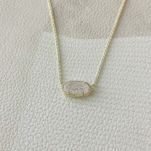 A dainty stone and delicate metallic chain combine to create the Elisa Gold Pendant Necklace in Iridescent Drusy, your new favorite wear-anywhere accessory. This pendant necklace can be paired with any look, providing that extra touch of timeless style. Make the Elisa Gold plate Pendant Necklace a staple in your wardrobe and you will not be disappointed.
